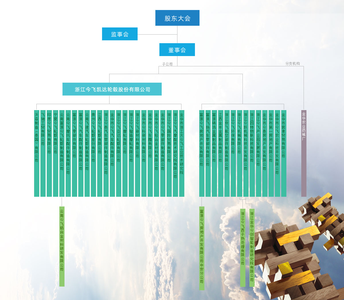 今飞(fei)控股集团有限(xian)公司始(shi)建于(yu)1959年(nian)(nian),公司总部(bu)位于(yu)金(jin)华(hua)市开发区,于(yu)2000年(nian)(nian)开始(shi)被列入金(jin)华(hua)市政(zheng)府重点扶持优(you)势企(qi)业(ye)(ye)(ye),相继被评为中国(guo)汽车零(ling)(ling)部(bu)件(jian)百强企(qi)业(ye)(ye)(ye)、中国(guo)摩托车行业(ye)(ye)(ye)零(ling)(ling)部(bu)件(jian)优(you)势企(qi)业(ye)(ye)(ye)、中国(guo)汽车零(ling)(ling)部(bu)件(jian)车轮行业(ye)(ye)(ye)龙头企(qi)业(ye)(ye)(ye)、全国(guo)就业(ye)(ye)(ye)与社(she)会(hui)保障先(xian)进民营企(qi)业(ye)(ye)(ye)、浙江省工业(ye)(ye)(ye)行业(ye)(ye)(ye)龙头骨干(gan)企(qi)业(ye)(ye)(ye)...